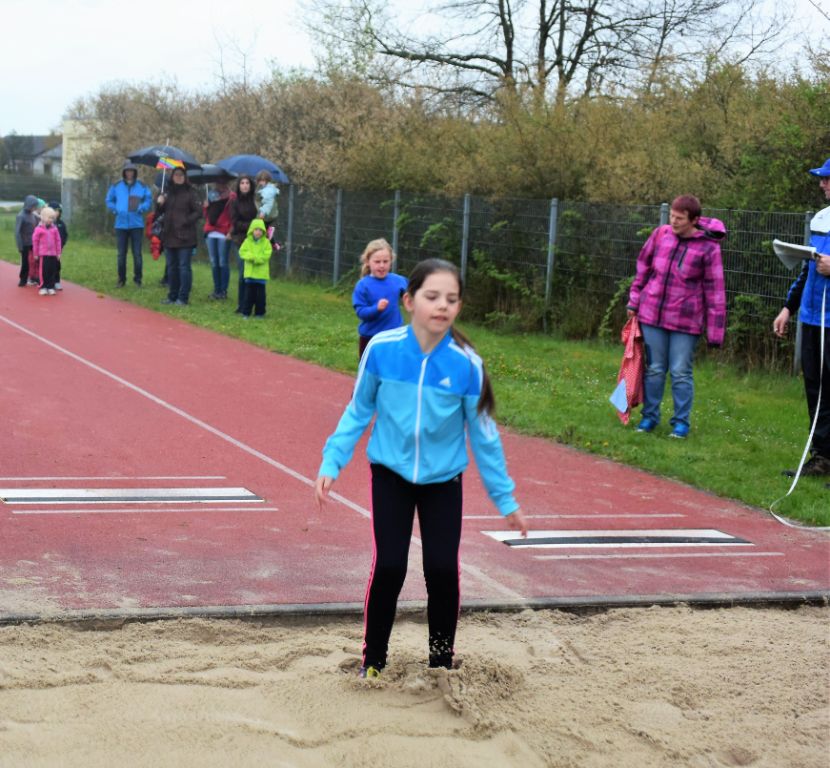 Marie Gelbert (W10) erreichte im Weitsprung mit einer Weite von 2,77m eine neue persönliche Bestleistung. Weitere Ergebnisse: 50m-Sprint 10,1s, Ballwurf 19,0m und Hochsprung 0,90m. In der Abrechnung bedeuteten diese Leistungen für Marie einen zweiten (Ballwurf) und drei dritte Plätze.