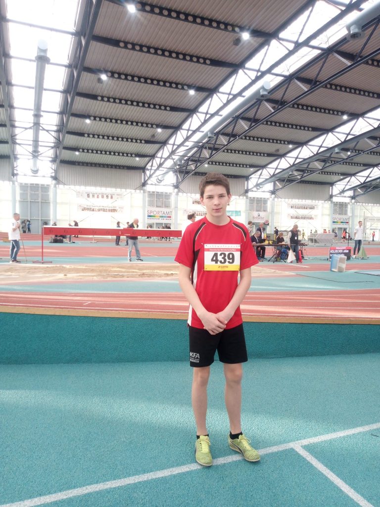 Liam Freihold startete in Frankfurt über 60 M. Dort lief es noch nicht so erfolgreich. Mit 9,01 Sekunden ging es nach dem Vorlauf leider nicht weiter. Besser lief es bei den 60 m Hürden. Im Vorlauf qualifizierte er sich mit 11,21 Sekunden für das Finale. Dort wurde er mit 10,70 Sekunden sechster. Ein toller Erfolg!