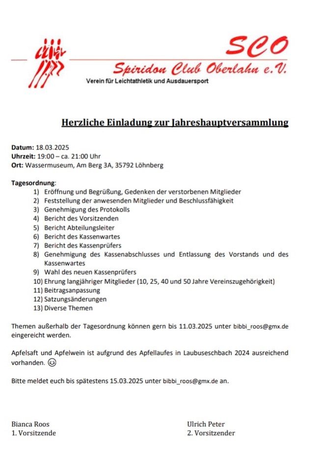Erinnerung an unsere Jahreshauptversammlung! 13. März 2025AllgemeinFynn Well Einladung Jahreshauptversammlung