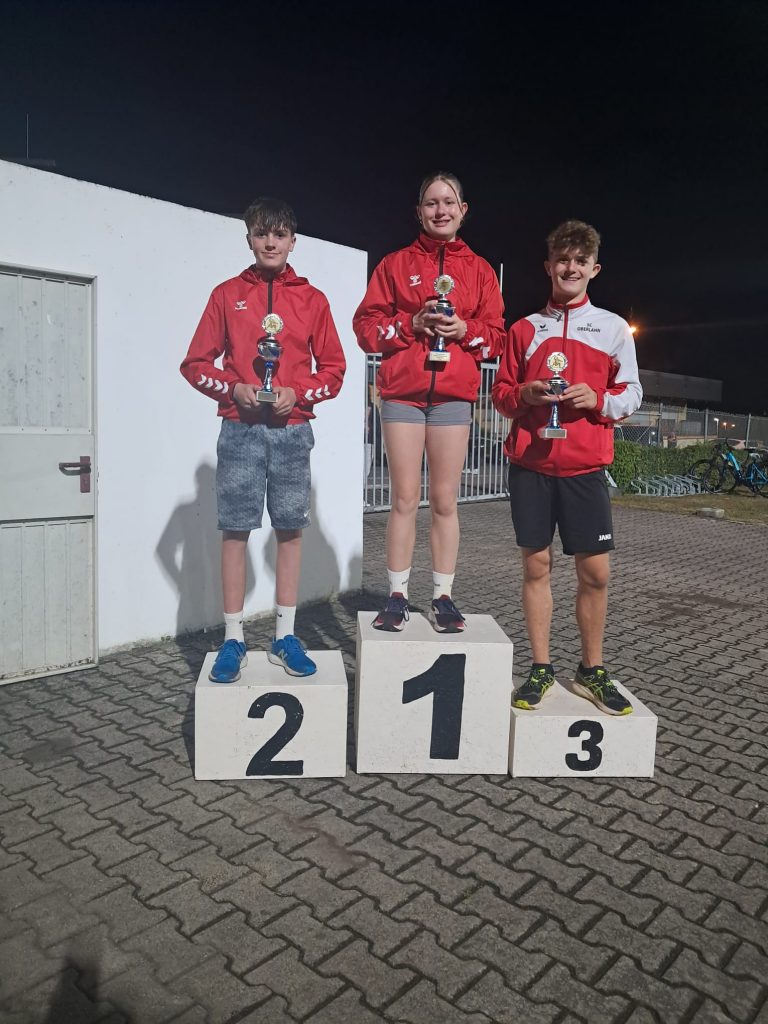 Finales Weitsprung Meeting 7. September 2025AllgemeinFynn Well Am 27.8. fand das dritte und letzte Weitsprung Meeting in Eschhofen statt.An diesem Tag wurden auch alle Gesamtsieger geehrt.Fünf Athleten durften sich über einen Pokal freuen.Colin M10, Jana W11, Nick M13, Johanna W14 und Maurice M15. Ergebnisliste